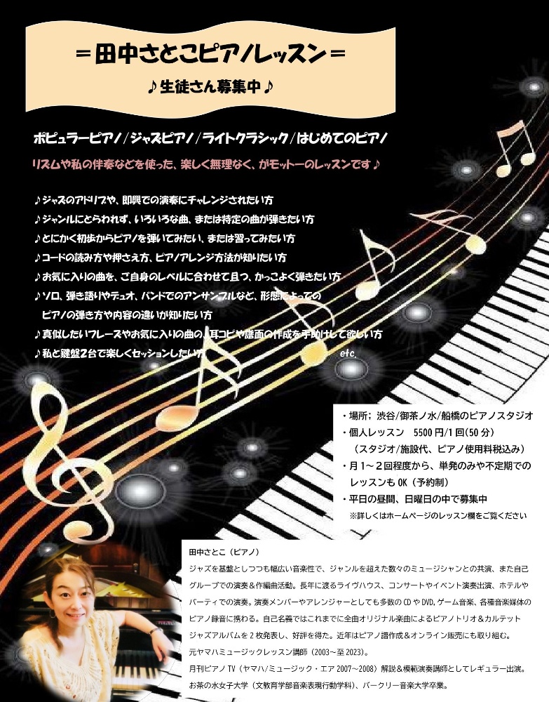 ■場所; 渋谷/御茶ノ水/船橋のピアノスタジオ